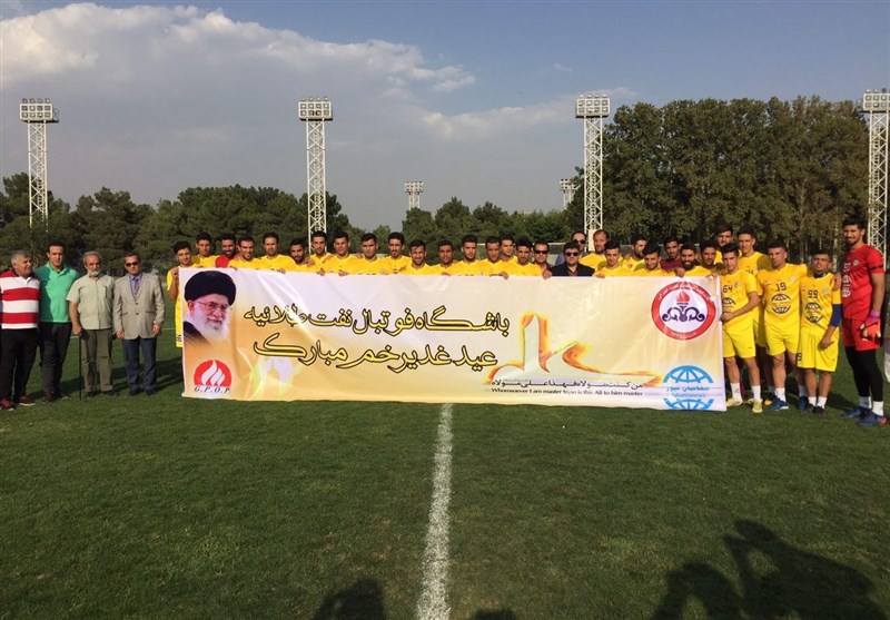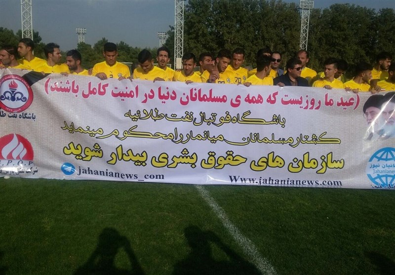 * بازیکنان نفت در ابتدای تمرین با دو بنر مختلف، عید غدیر را تبریک گفته و کشتار مسلمانان میانمار را محکوم کردند.