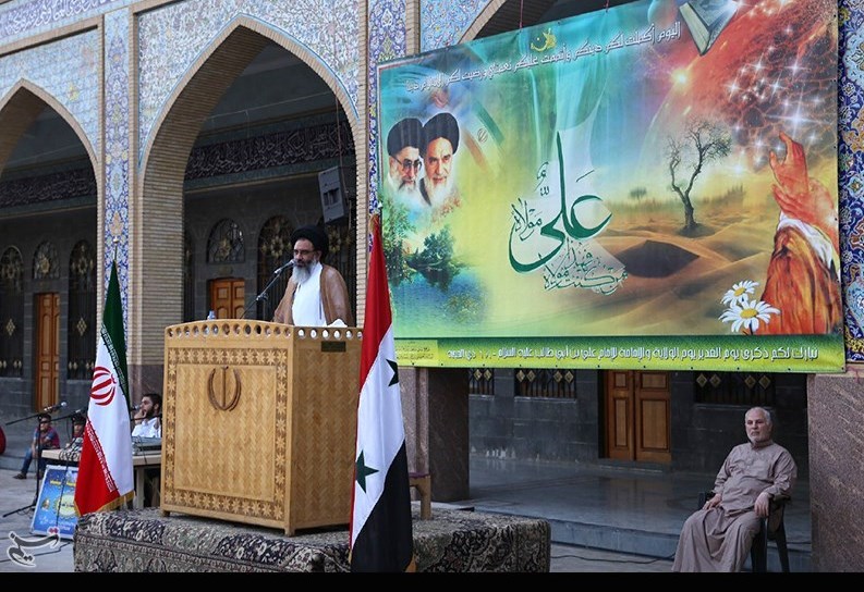 نماینده ولی‌فقیه در سوریه در سخنانی تاکید کرد این عید، عید عموم مسلمانان است نه یک مذهب خاص. وی همچنین پیروزی‌های اخیر ارتش سوریه و مقاومت اسلامی در سوریه و عراق را که آخرین مورد آن شکستن محاصره دیرالزور بود، تبریک گفت.