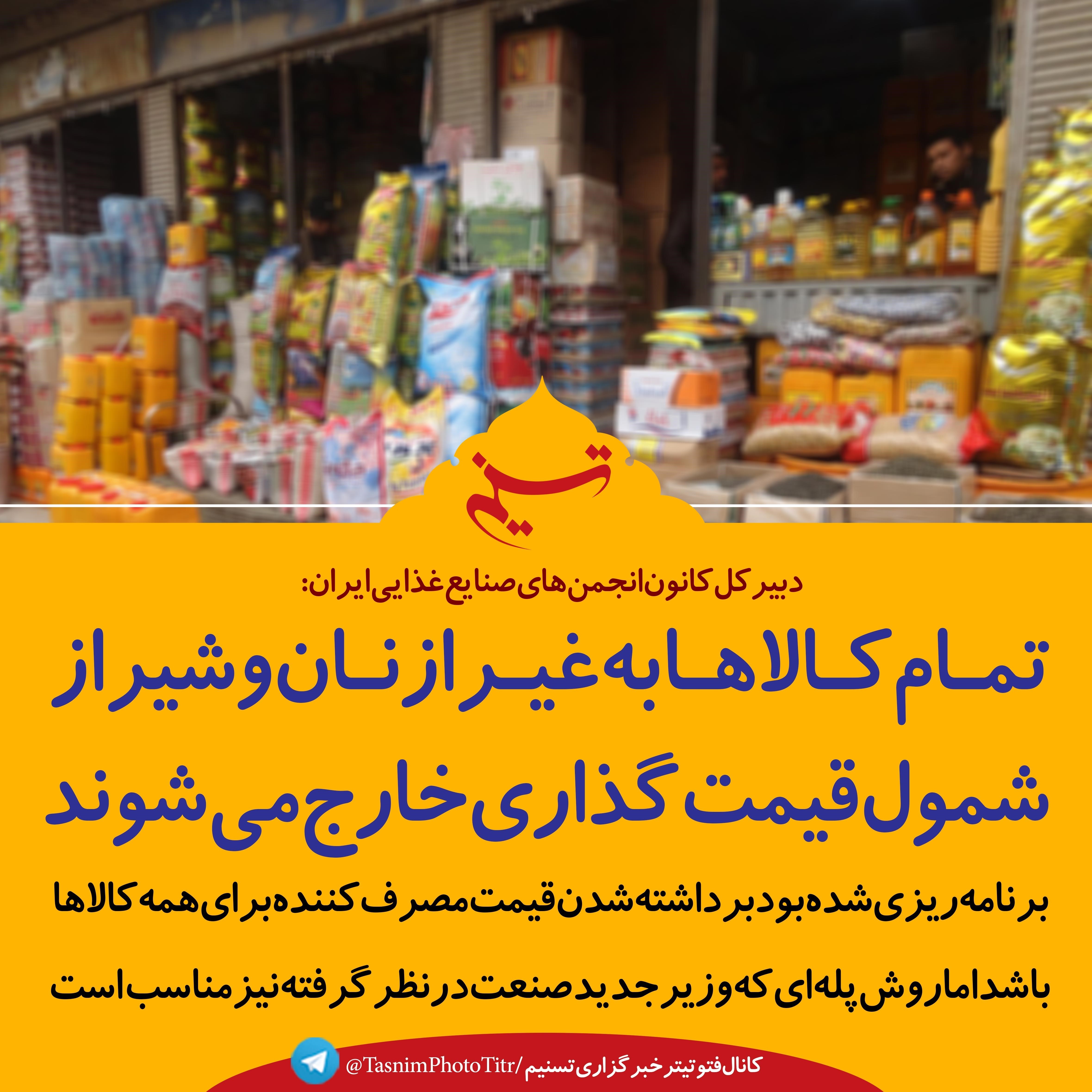 فتوتیتر/ تمام کالاها به غیر از نان و شیر از شمول قیمت گذاری خارج می‌شوند