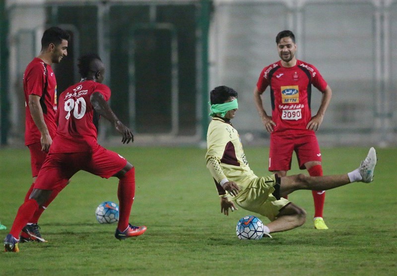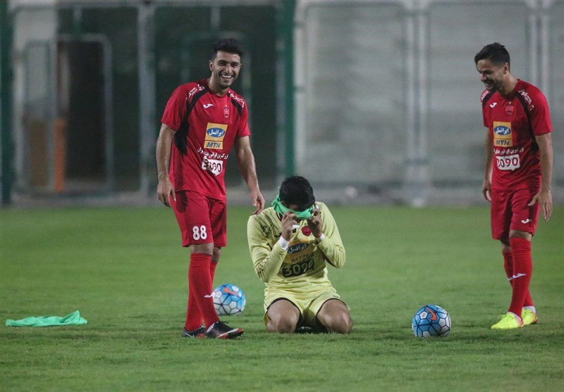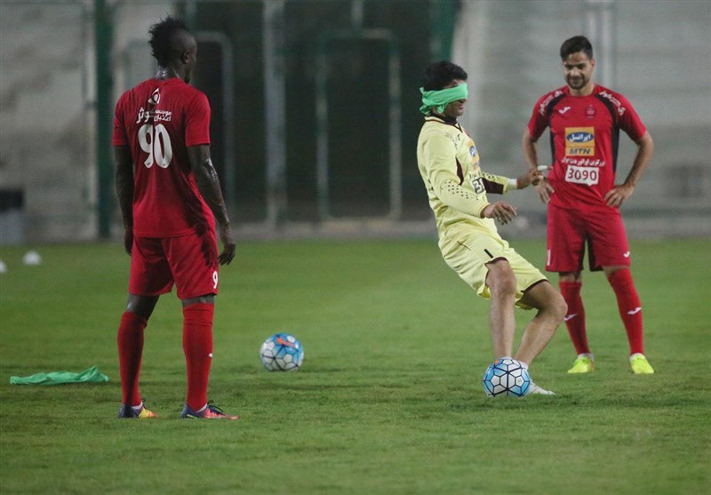 تمرین شب گذشته پرسپولیسیها که دو روز پیش از برگزاری دیدار با الاهلی برگزار شد، با شور و حال خاصی همراه بود. جذابترین بخش تمرین هم فوتبال چشم بسته بود که بازیکنان باید چشمهای خود را با کاور بسته و به توپ شوت میزدند. در این تمرین زمین خوردن علیرضا بیرانوند و خندههای گادوین منشا جلب توجه میکرد. جالب اینجاست که بیشتر بازیکنان پرسپولیس نمیتوانستند با چشمهای بسته ضربه مناسبی به توپ بزنند.