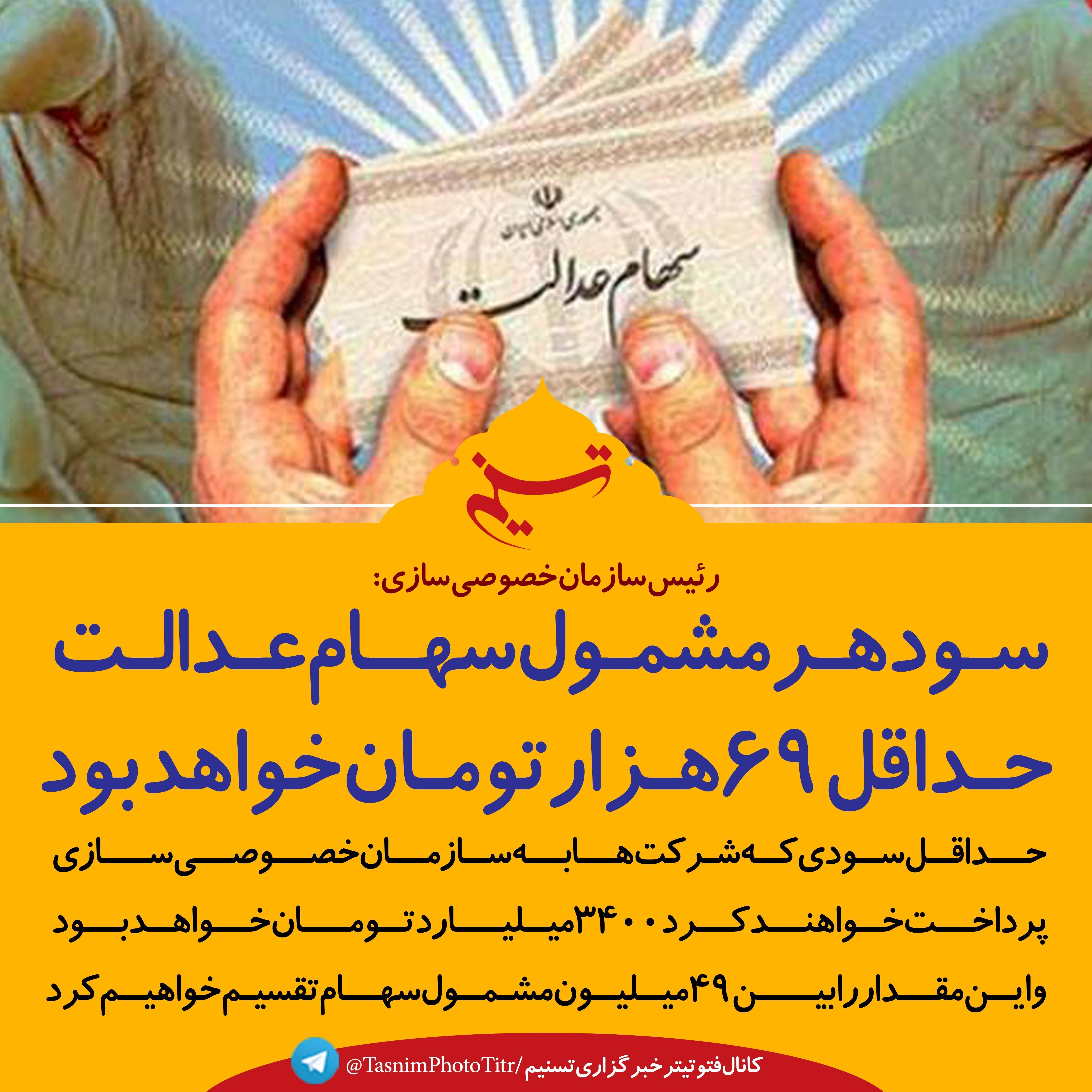 فتوتیتر/سود هر مشمول سهام عدالت حداقل 69 هزار تومان خواهد بود