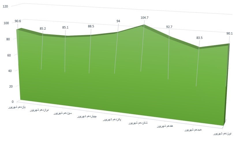 در نمودار زیر، میزان مصرف بنزین در روزهای اخیر نشان داده شده است.