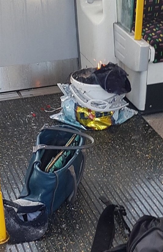 در تصاویر منتشر شده یک سطل دیده میشود که درون آن یک بسته وجود دارد که پس از انفجار از آن شعله های آتش بیرون زده است. این تصویر پس از انفجار گرفته شده و در بالای سطل تعدادی سیم مشاهده میشود. پلیس لندن این حادثه را تروریستی توصیف کرده است.