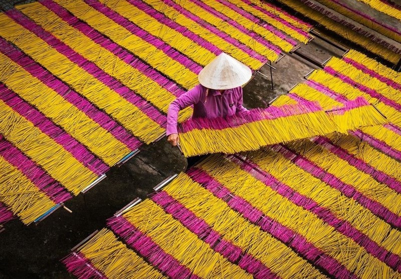 عکس روز نشنال جئوگرافیک متعلق به تولید انبوه عودهای رنگی در تای نین ها (Tay Ninh) ویتنام است.