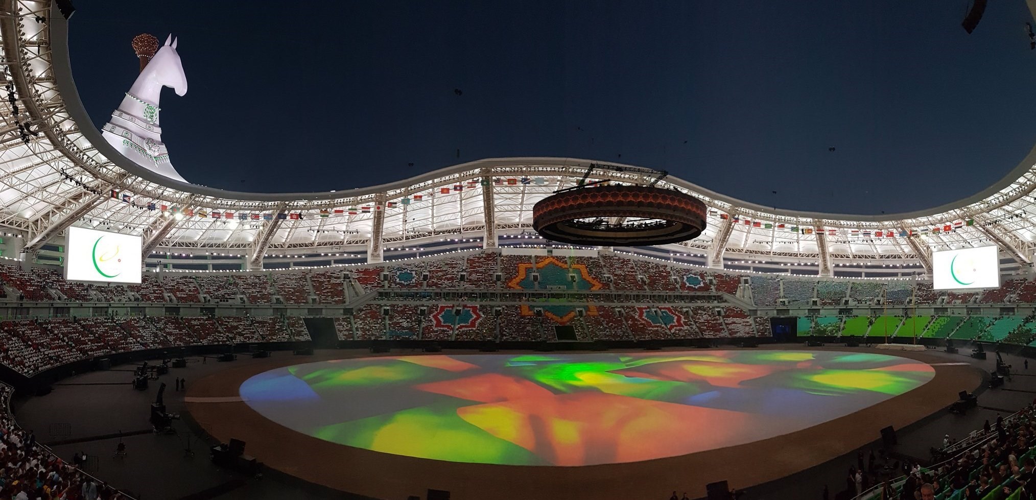 -ترکمنیها برنامههای مختلفی برای مراسم افتتاحیه درنظر گرفتهاند که یک نمونهاش مجسمه بزرگ اسبی است که در ورزشگاه ساخته شده است.