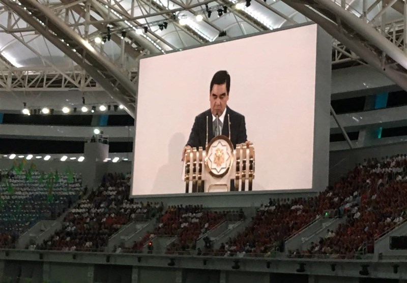 -رئیسجمهور ترکمنستان زنگ آغاز بازیهای داخل سالن و هنرهای رزمی آسیا 2017 را در استادیوم المپیک عشق آباد به صدا در آورد.