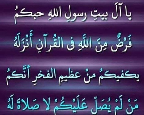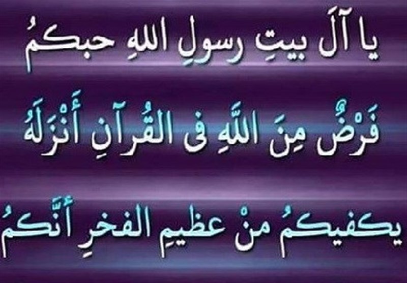 ای خاندان نبوّت، محبّت شما فرضی است که از جانب خداوند در قرآن آمده است. همین در عظمت شأن شما کافی است، آن کس شما را در نماز درود نگفت، نمازی ندارد، (نمازش درست نیست).