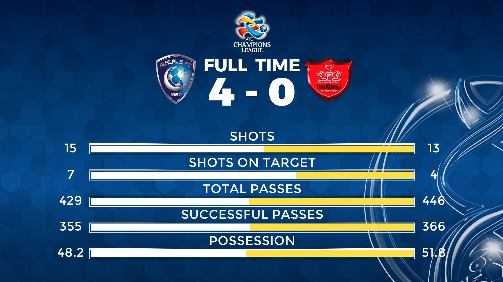 در پایان دیدار الهلال - پرسپولیس آمار حکایتی جدا از نتیجه بازی داشت.