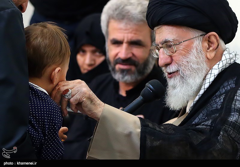 بوسه رهبر انقلاب بر گونه فرزند شهید حججی+عکس