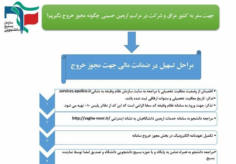 دانشجویان مشمول (معافیت تحصیلی) که قصد حضور در پیاده روی اربعین حسینی را دارند، با ثبت نام در این سامانه میتوانند به صورت رایگان مجوز خروج از کشور را دریافت کنند.