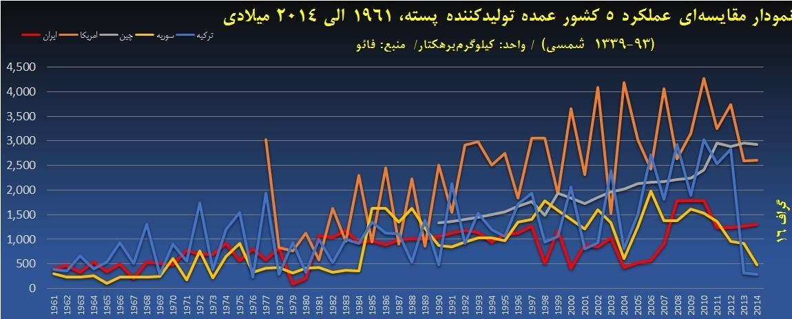 گراف/ مقایسه عملکرد باغهای پسته در 5 کشور اصلی تولیدکننده