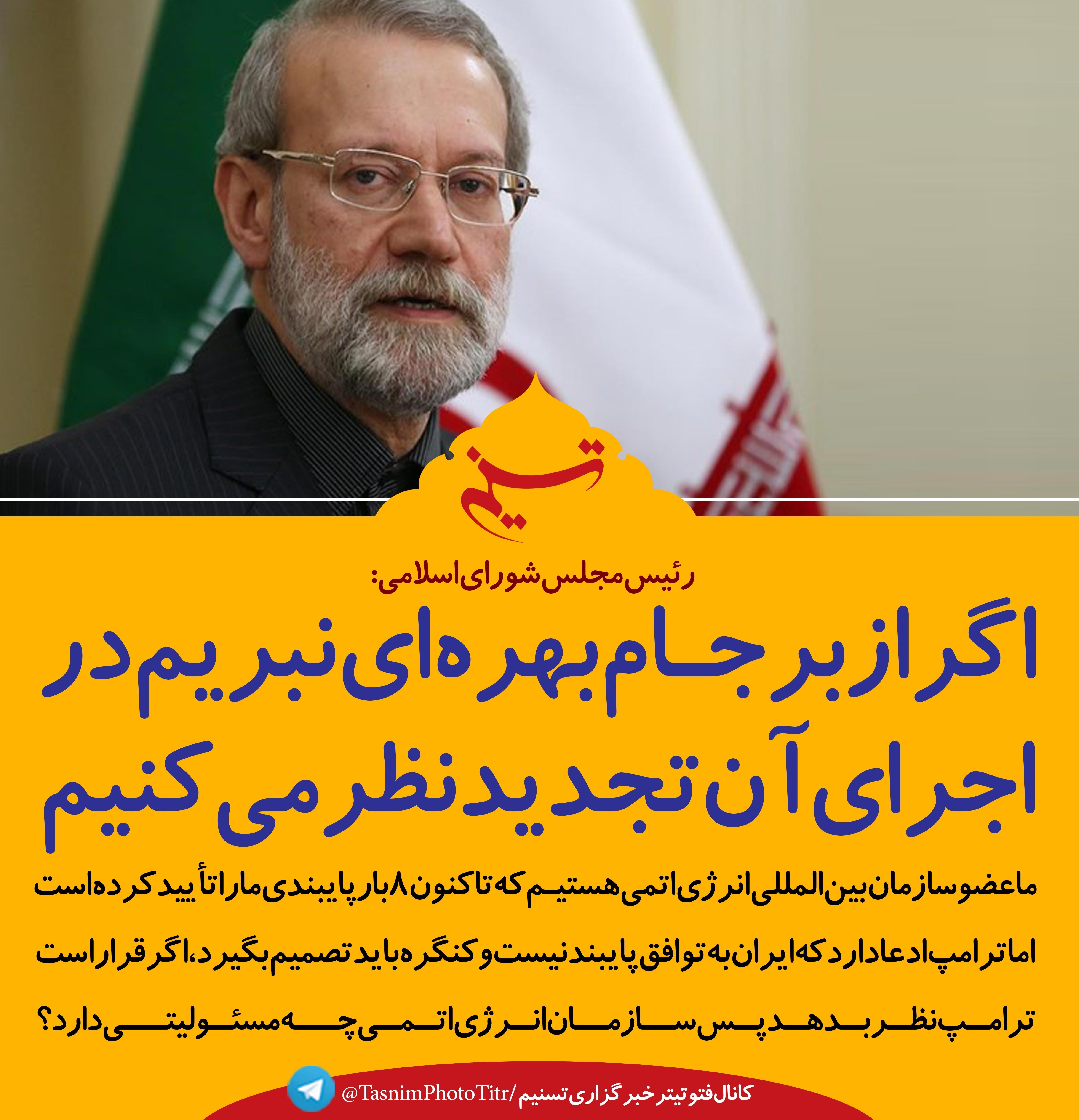 فتوتیتر/لاریجانی:اگر از برجام بهره‌ای نبریم در اجرای آن تجدیدنظر می‌کنیم
