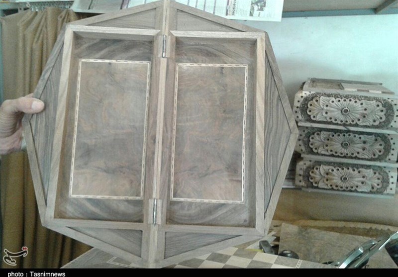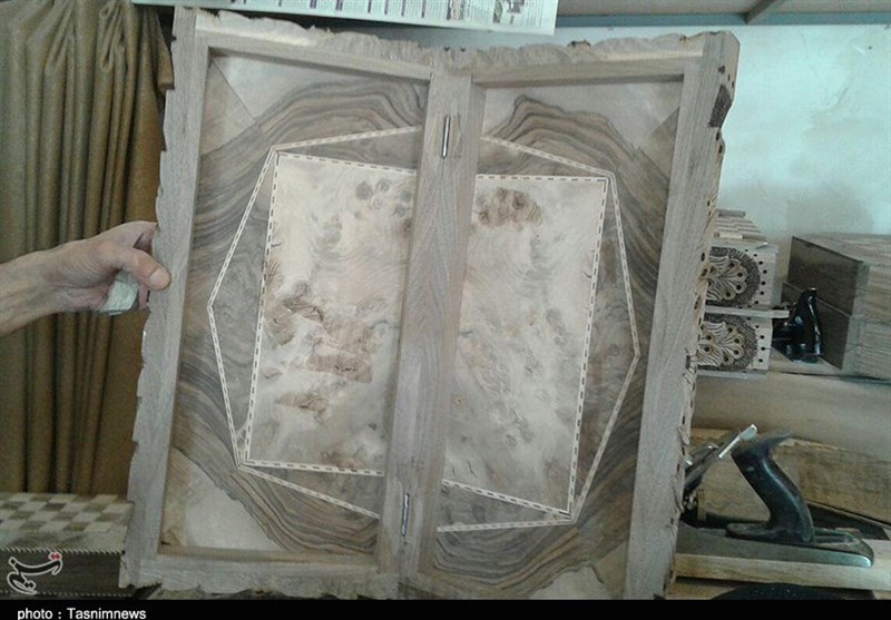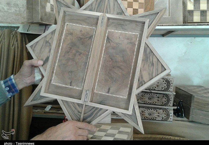 وی گفت: بنده در اینجا «کرسی قرآن، عصا، جعبه جواهرات، کیف زنانه، جای دستمال کاغذی، صفحه شطرنج، تخته نرد صفحه شطرنجی و تخته نرد رومیزی» میسازم.