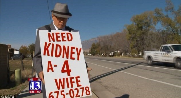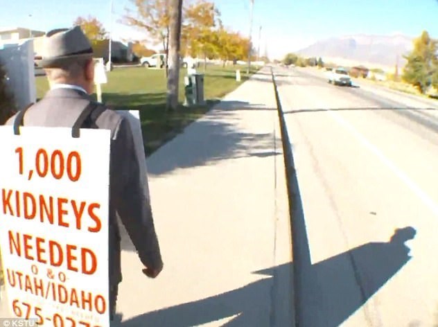 بر اساس گزارش هافینگتنپست، وی بیلبورد مقوایی را که بر روی آن نوشته شده "نیاز به کلیه برای همسرم"(Need Kidney 4 Wife) را به تن کرده و در خیابانها و جادههای شهر «فاروست» (Farr West) ایالت «یوتا» (Utah) آمریکا راه میرود.