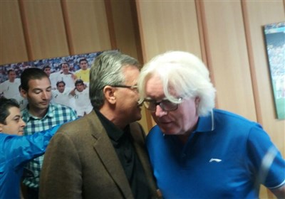 برانکو و شفر پیش از برگزاری نشست خبری سرمربی استقلال با یکدیگر خوش و بش کرده و همدیگر را در آغوش کشیدند.