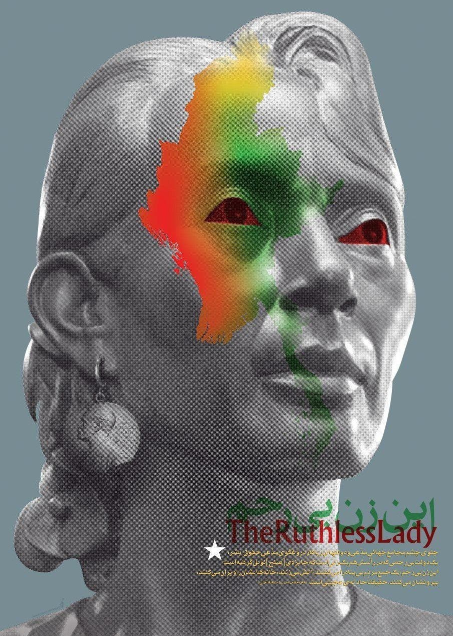 این بیانات سوژه جدیدترین اثر سیدحمید شریفی آل هاشم شده است تا این پوستر را با عنوان «این زن بیرحم» (The Ruthless Lady) خلق کند.