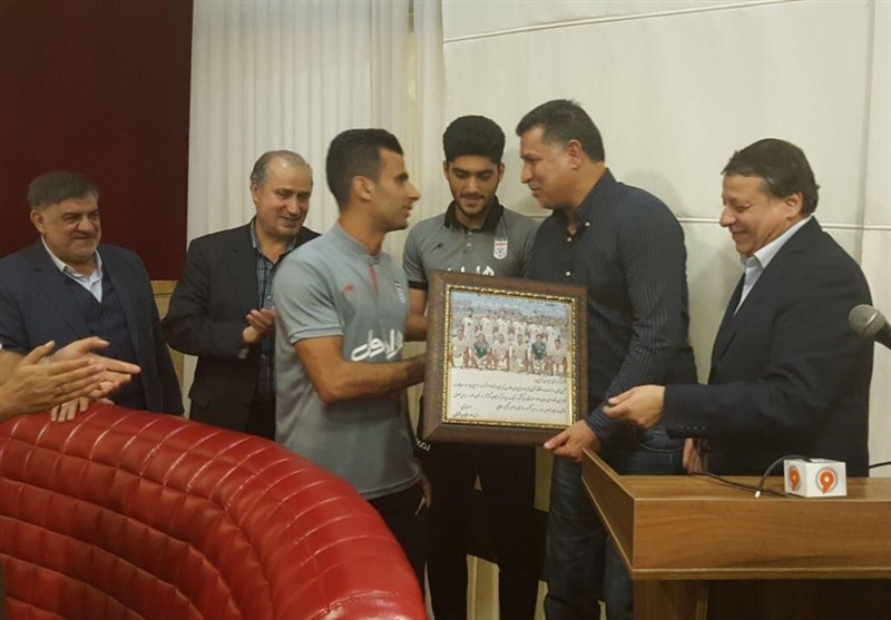تقدیر از علی دایی در مراسم بدرقه تیم‌های فوتبال جوانان و ساحلی+ تصاویر