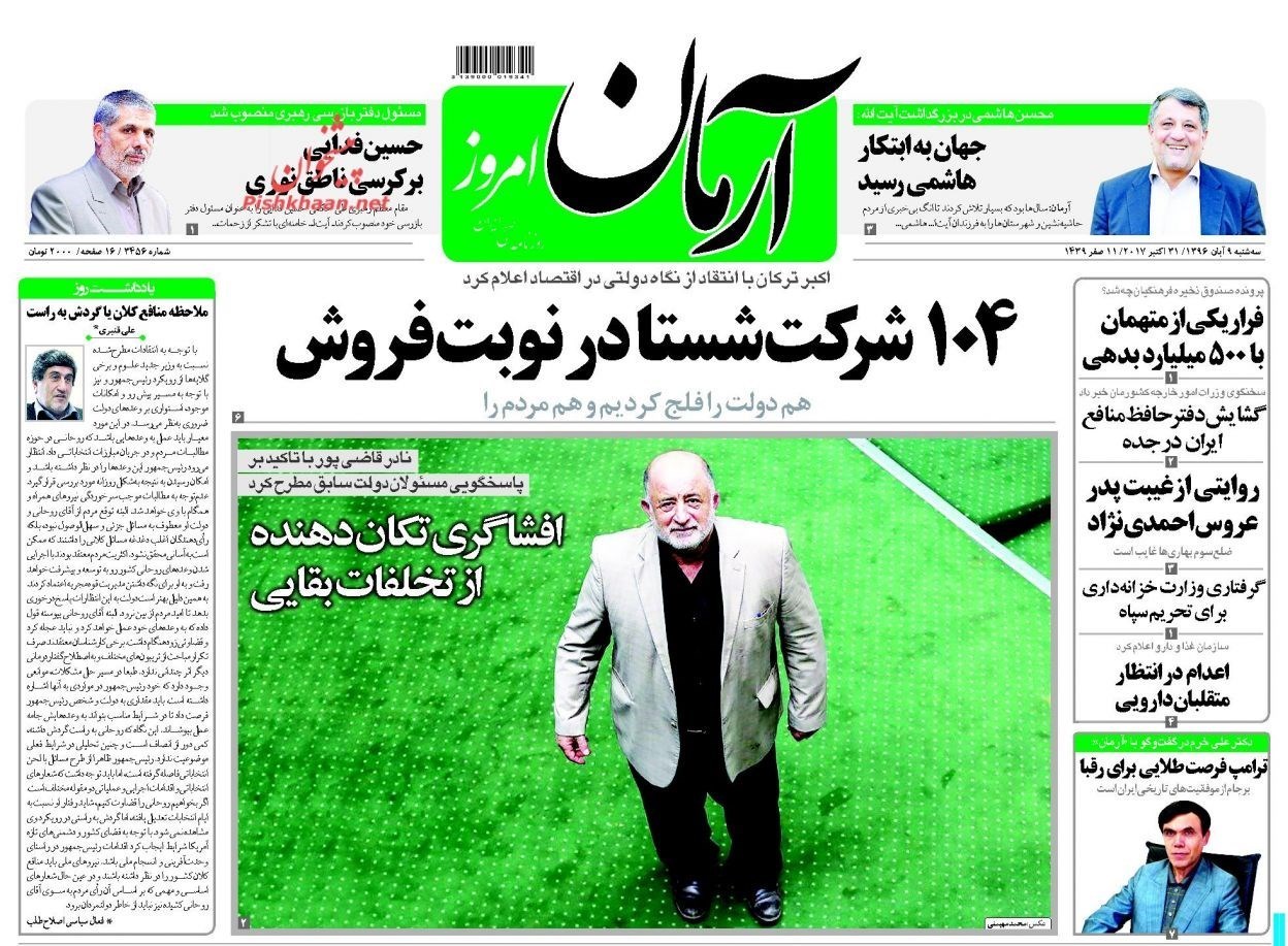 تصاویر صفحه روزنامه‌های سه‌شنبه 9 آبان