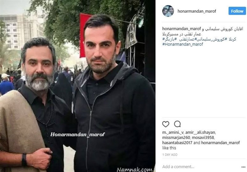 کوروش سلیمانی، بازیگر تلویزیون، با انتشار عکسی نوشته است: «راهپیمایی نجف به سمت کربلا‌. تجربه‌اى پرشور و بى‌نظیر از حضور مردمى که عاشقانه به امام شان عشق مى‌ورزند‌. قطره‌اى بودم در اقیانوس... .»