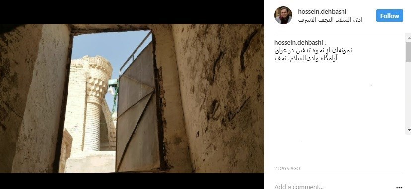 حسین دهباشی، تاریخ‌پژوه و مستندساز در صفحه اینستاگرام خود، شرح سفر خود را روایت می‌کند. او با انتشار تصویری از وادی السلام نجف‌الاشرف، نمونه‌ای از نحوه تدفین در عراق را شرح داده است.