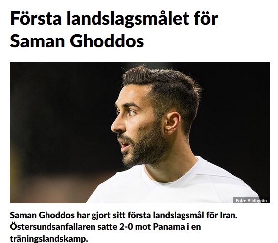 به گزارش خبرگزاری تسنیم، به نقل از سایت معتبر فوتبال کانال سوئد، سامان قدوس، مهاجم تیم اوسترساندس سوئد اولین گل ملیاش را با پیراهن ایران در بازی دوستانه با پاناما به ثمر رساند. بازی که شب گذشته (پنجشنبه) با نتیجه 2 بر یک به سود ایران پایان یافت.