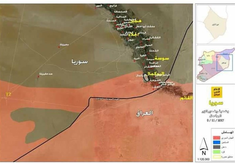 سه روز پیش ارتش سوریه و نیروهای مقاومت موفق شدند بر شهر البوکمال در حومه دیرالزور سیطره کامل بیابند.