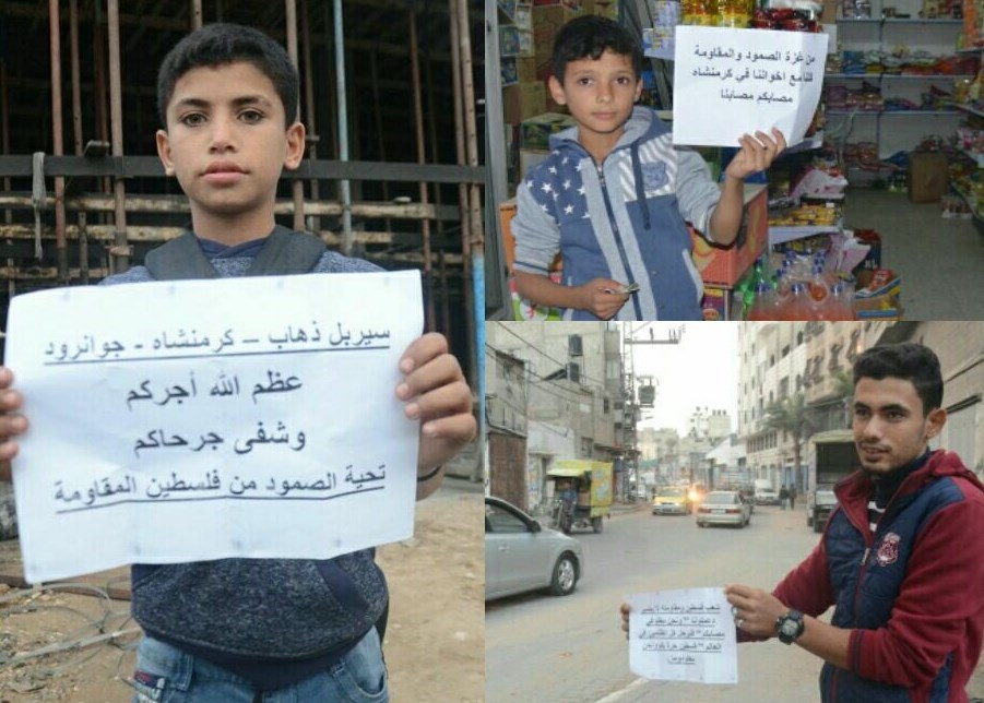 به گزارش گروه دانشگاه خبرگزاری تسنیم به نقل از روابط عمومی مرکز بین المللی «عدالت برای صلح» پس از وقوع زلزله اخیر در استان کرمانشاه کمپینی در شهر غزه برای ابراز همدردی با مردم زلزلهزده ایران راهاندازی شد.