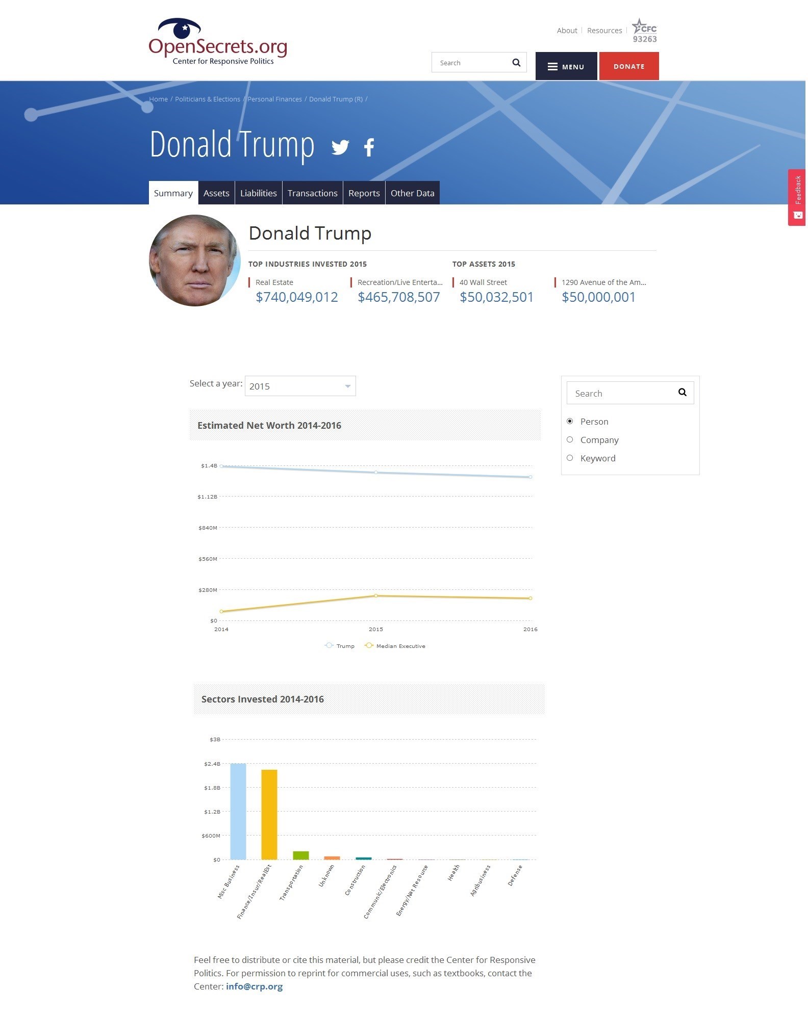 به گزارش خبرنگار اقتصادی خبرگزاری تسنیم، در بسیاری از کشورهای دنیا ــ خصوصاً کشورهای پیشتاز اقتصادی ــ مسئله شفافیت، بهعنوان یک پیشنیاز اولیه مسئله ای حل شده است. در این کشورها داراییهای مقامات کشور با اندکی تغییر و پس از تثبیت، روی وب قرار میگیرد و در دسترس همگان قرار دارد. داراییهای ترامپ، رئیس جمهور آمریکا را تا سال 2016 ببینید.