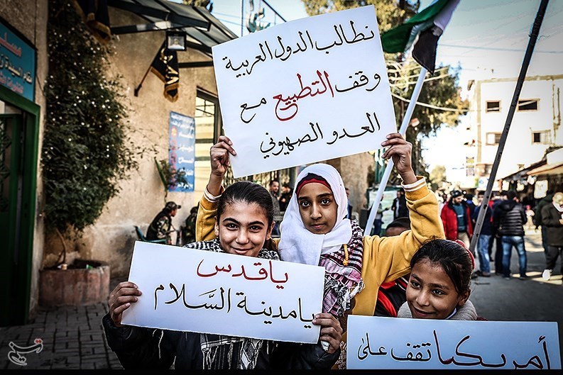 شماری از علما و شخصیتهای دینی هم که در این تجمع شرکت کرده بودند، از جامعه عربی و اسلامی درخواست کردند تا در پایبندی به مسئله فلسطین کوتاهی و سهلانگاری نکنند. آنها تأکید کردند که وضعیت امروز مستلزم وحدت بالای امت اسلام در مقابل این تعدی و تجاوز خطرناک آمریکایی است.