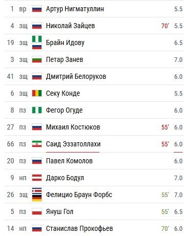به گزارش خبرگزاری تسنیم، خبرگزاری چمپیونات روسیه با مشارکت کاربرانش به بازی 55 دقیقهای سعید عزتاللهی در ترکیب آمکار برابر تیم مدعی کراسنودار نمره فنی متوسط 6 را داد. تیم آمکار روز گذشته (یکشنبه) در این بازی خانگی با نتیجه 3 بر یک شکست خورد تا در جمع 4 تیم انتهای جدولی لیگ برتر روسیه قرار بگیرد.
