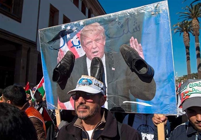 مغربیها همچنین فریاد می زدند «ترامپ ای صهیونیست، قدس در چشمان ما جا دارد»، و« ملت آزادی فلسطین را میخواهد».