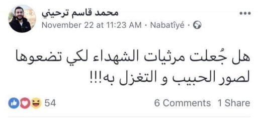 این شهید زینبی تابستان امسال در بحبوحه درگیری نیروهای مقاومت با تروریست‌های جبهه النصره در منطقه جرود عرسال لبنان، تصویری در فضای مجازی منتشر کرد که با در دست داشتن نوشته‌ای خطاب به سخنگوی ارتش اسرائیل گفت: «ما اینجا با جبهه النصره تمرین می‌کنیم تا برای حمله به الجلیل (در شمال فلسطین) آماده شویم.» بعد از انتشار این تصویر، رسانه‌های اسرائیلی با پوشش این پیام از تهدید جدی حزب‌الله برای آزادی فلسطین اظهار نگرانی کردند.