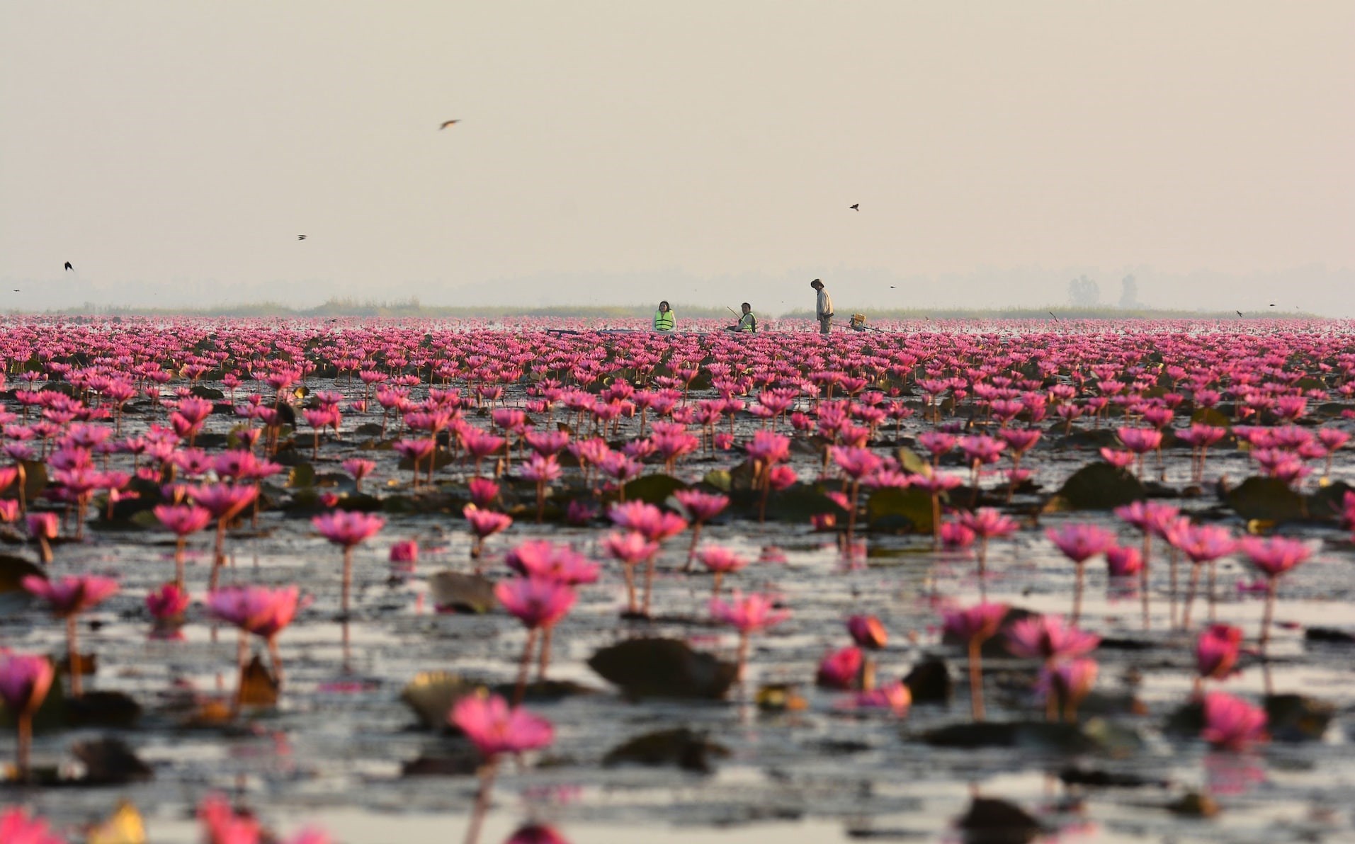 گل لوتوس در این دریاچه آب شیرین به طول 15 کیلومتر و عرض 5 کیلومتر گسترده میشود.