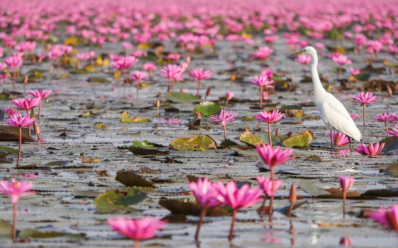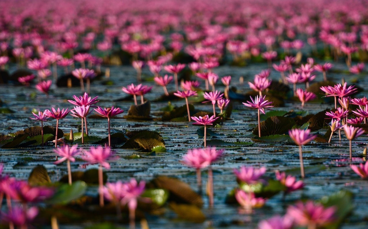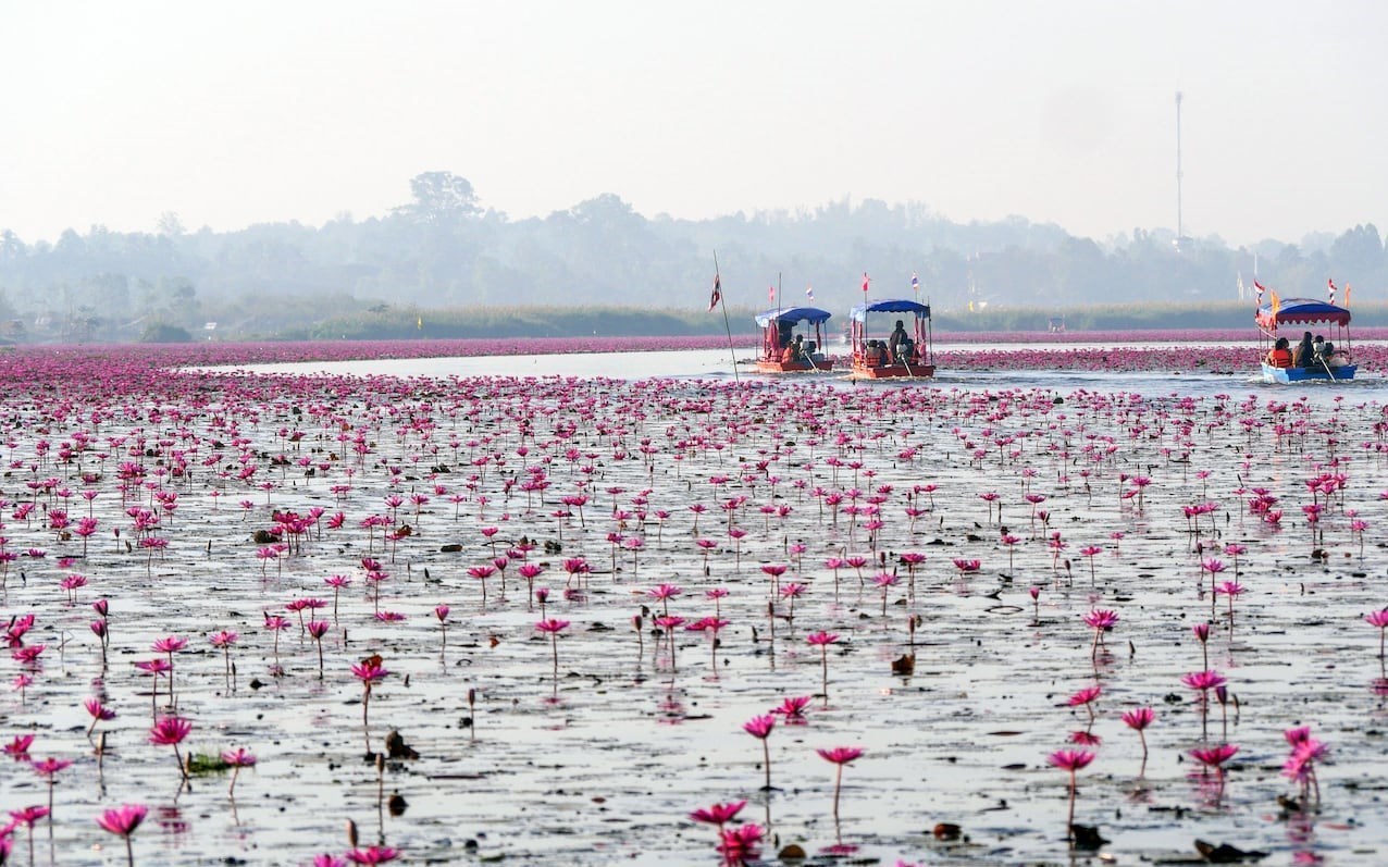 بر اساس گزارش تلگراف، پدیدهای که به عنوان دریای سرخ لوتوس شناخته میشود، در "نونگ هان کوما وپاپی"(Nong Han Kum Pavapi) در استان «اوندون تنانی»(Udon Thani)، به مدت سه ماه، از دسامبر تا فوریه شکل میگیرد.