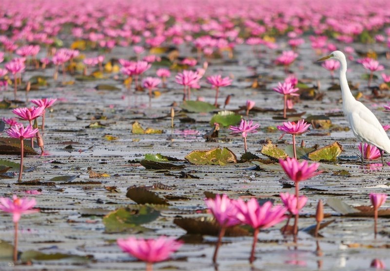 به گزارش خبرنگار اجتماعی خبرگزاری تسنیم، هر سال دریاچه آب شیرین در شمال شرقی تایلند با رویش شکوفههای گل «لوتوس»(lotus) به شکل زیبایی جلوه میکند که گردشگران بسیاری را از اقصی نقاط جهان به این کشور میکشاند.