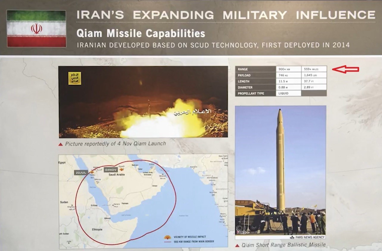 آن چیزی که قطعی است، موشکی که یمن به سوی ریاض شلیک کرده، بیش از 800 کیلومتر برد داشته است ولی آمریکاییها برای اینکه موشک شلیک شده را با برد موشک قیام ایرانی تطبیق دهند، برد موشک قیام را 100 کیلومتر افزایش دادهاند تا موشک شلیک شده از یمن به سوی ریاض، در محدوده برد موشک قیام ایران قرار بگیرد.