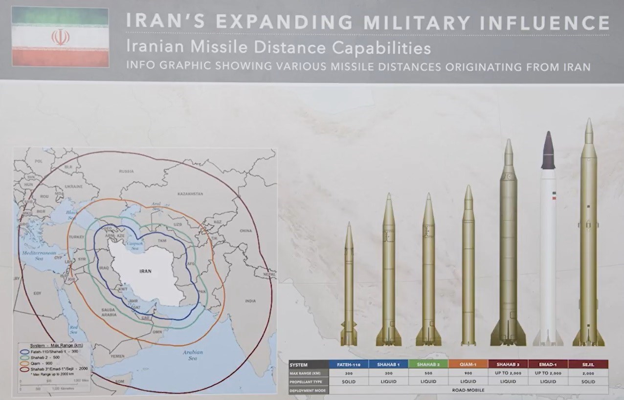 یا در مورد موشک شهاب 3 نیز، برد این موشک هرگز 2000 کیلومتر اعلام نشده است اما در پوستری که آمریکاییها به نمایش گذاشتهاند، برد این موشک تا 2000 کیلومتر ثبت شده است.