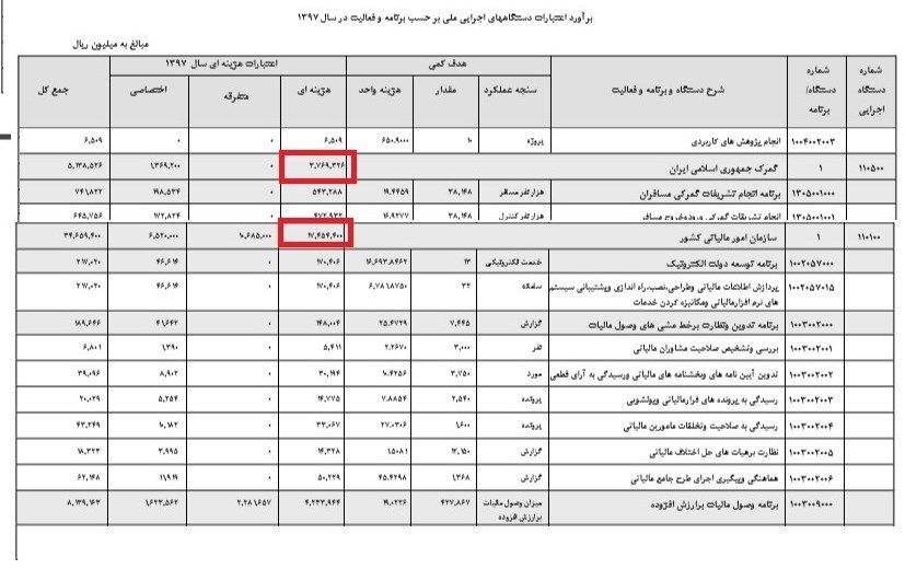 به گزارش خبرنگار اقتصادی خبرگزاری تسنیم، بررسی لایحه بودجه 97 نشان میدهد در حالی که اعتبارات در نظر گرفته شده برای سازمان مالیاتی حدود 1.745 هزار میلیارد تومان است، بودجه برآوردی گمرک حدود 370 میلیارد تومان میباشد.