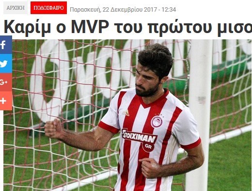 در پایان این گزارش آمده است: کریم انصاریفرد شایسته عنوان بهترین بازیکن تیم المپیاکوس و تبریکهای زیاد است، زیرا تا پایان ماه اوت میلادی خارج از ترکیب تیمی قرار داشت. تصمیم گرفت بماند و مبارزه کند. هر چند میدانست بسنیک هاسی روی او حساب نمیکند. البته طول عمر مربیگری هاسی در المپیاکوس خیلی طول نکشید و چهار ماه بعد مشخص شد که تصمیم ریسکبرانگیز کریم انصاریفرد برای ماندن درست بود. او مبدل به مهاجم اول تیم المپیاکوس شد و هدفش این است با عنوان بهترین گلزن سوپر لیگ یونان راهی جام جهانی 2018 روسیه شود.