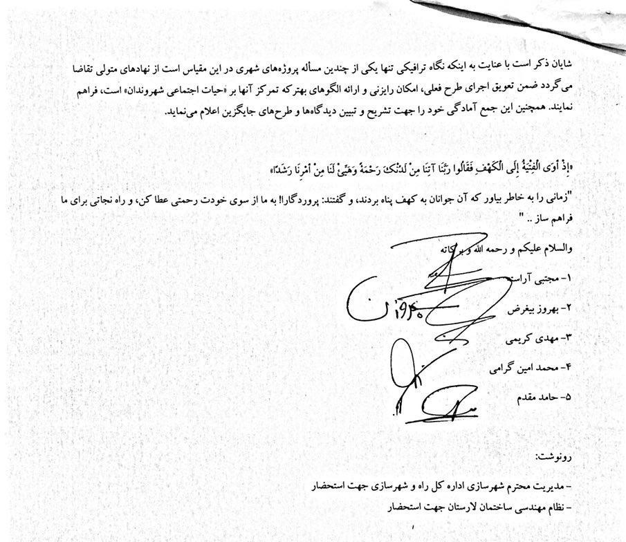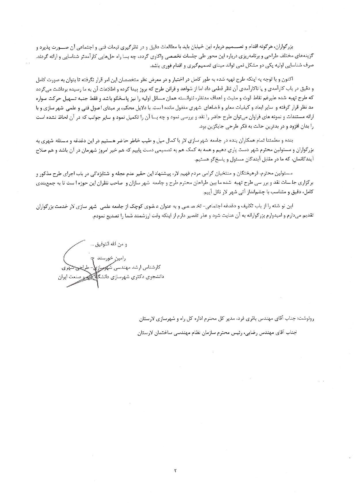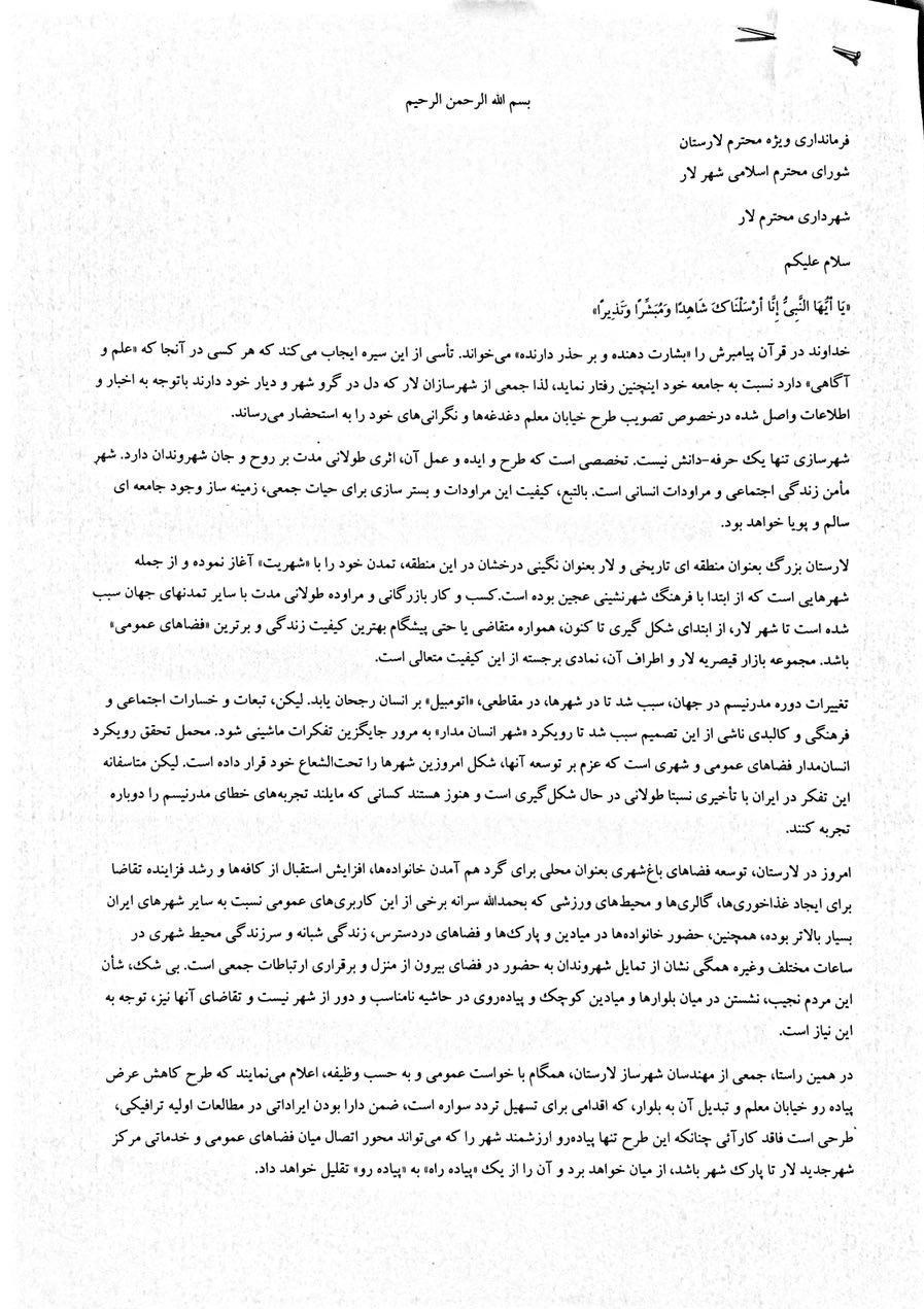 نامه شهرسازان لارستانی درباره خیابان معلم شهر لار