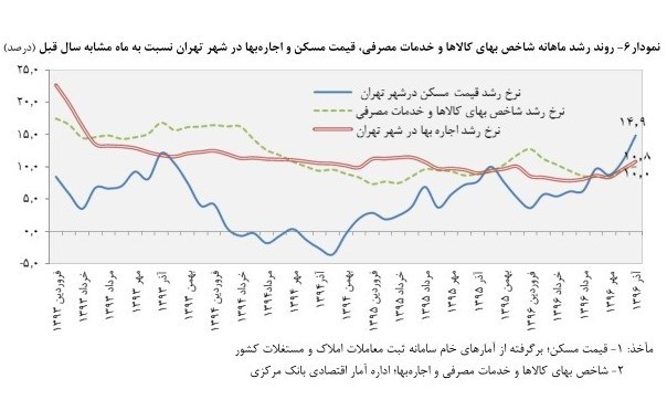ماهیت قراردادهای اجاره مسکن که غالبا یکساله تنظیم میشود و اثرپذیری شاخص اجارهبهای مسکن از سیاستهای کنترل و مهار تورم، سبب تغییر متناسب اجارهبها با تحولات نرخ تورم شده است.