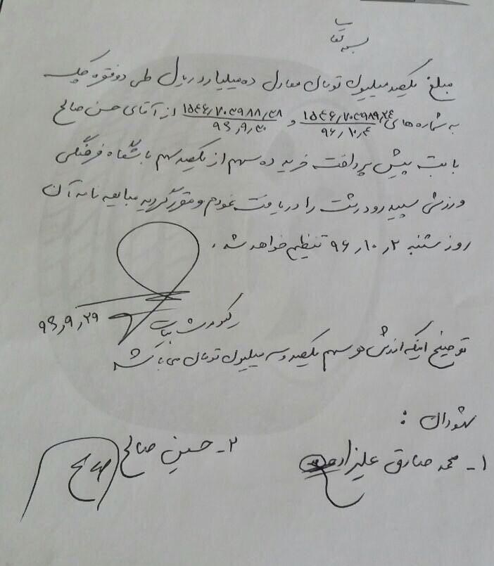 در چند روز اخیر در جامعه فوتبال رشت نام یک بازرگان فرهنگی و خوشنام بر سر زبان‌ها افتاده است که تمام هزینه‌های این یک ماه بیات را او پرداخت کرده و در عوض بیات بخشی از سهام باشگاه را به نام حسن صالح (بازرگان رشتی) منتقل کرده است!