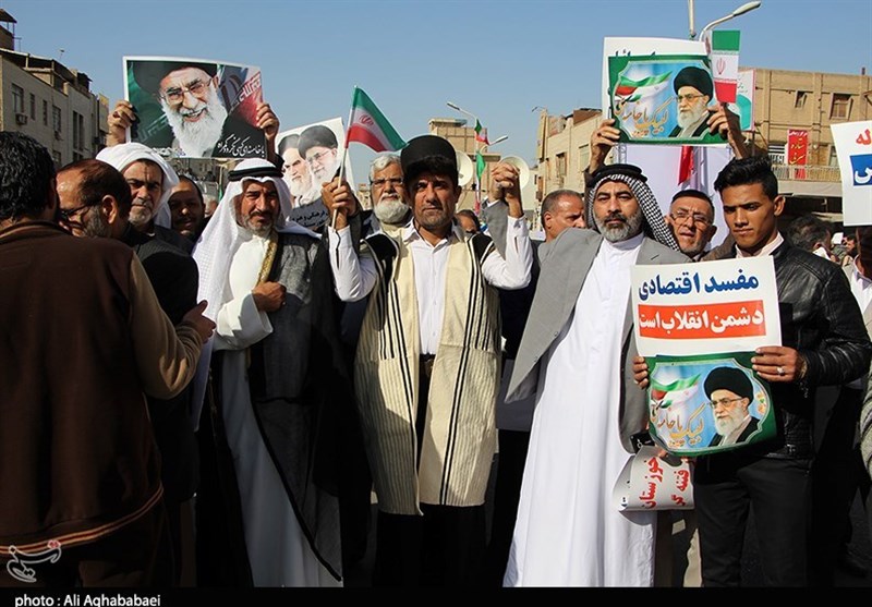 فقر و فساد و تبعیض حزبالله به پا خیز، نه اختلاس نه ذلت این است ندای ملت، فتنه گر بی ریشه اهواز حلب نمیشه، فقر و فساد و تبعیض نابود باید گردد از جمله شعارهای عدالت محوری مردم اهواز در راهپیمایی «شکوه وحدت» امروز بود.