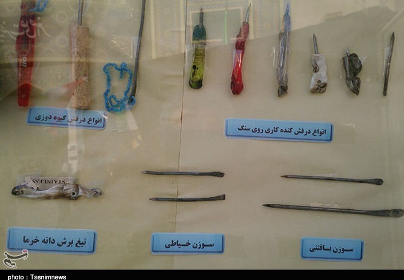 برای تهیه فولاد هم باز از آنهایی که به بیگاری میرفتند، خواهش میکردیم که هرچه را از میان تکههایی که در زمین کارشان ریخته بود، میتوانستند با خود بیاورند، بچهها هم قوطیهایی را برای نگهداری آب با خود میآوردند که شهید کمیجانی این قوطیها را با سنگ کوهی دو تکه میکرد و از آن بال، صورت و رخ در میآورد و ما هم آنها را نصب میکردیم و توسط خار به هم پرچ میکردیم. اینگونه از آنها طاووس میساختیم. من این افتخار را داشتم که تمام ادوات جنگی فیلم مختارنامه را در طول 6 سال و نیم به همراه هنرجویانم بسازم. از زره بگیرید تا کلاه خود و شمشیر و ... همه را ما ساختیم. تاکنون نمایشگاههایی را در سراسر کشور توانستم در طول این سالها به همراه هنرجویانم برگزار کنم.»