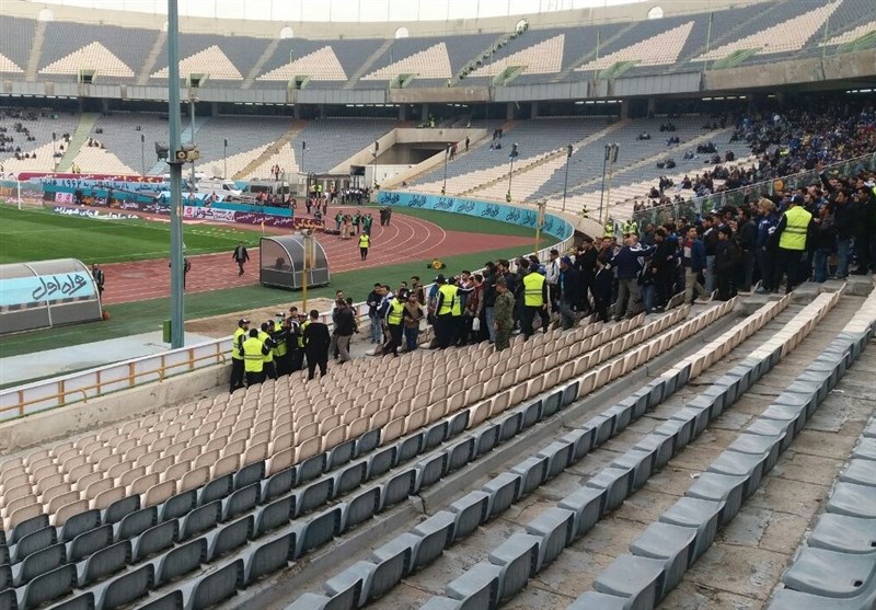 * ماموران نیروی انتظامی یکی از سکوهای جایگاه را خالی کرده بودند و اجازه نمیدادند تماشاگران در آنجا مستقر شوند. هواداران استقلال هم اعتراض کردند چرا باید با وجود داشتن بلیط نتوانند در این جایگاه مستقر شوند. در ادامه یکی از هواداران استقلال با ماموران نیروی انتظامی درگیر شد به طوری که درگیری فیزیکی بین آنها رخ داد.