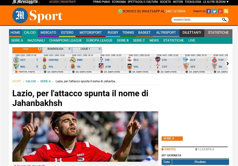 در گزارش مساجرو میخوانید: «تلفظ نام او سخت است (اشاره به فقدان حرف خ در زبان ایتالیایی) اما بازیهایش ارزشمند. در فهرست بازیکنان مورد نظر لاتزیو علاوه بر سردار آزمون، ممکن است نام علیرضا جهانبخش هم قرار بگیرد، بازیکنی هجومی که متولد سال 1993 است و در تیم آزد آلکمار، تیم سابق استفان دفری، بازیهای خوبی ارائه میکند.