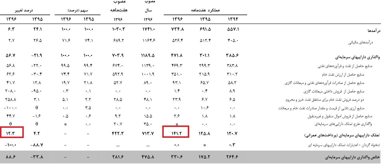 بودجه عمرانی 7ماهه امسال نیز در جدول زیر قابل مشاهده است، بر این اساس تا مهر ماه امسال تنها 14 هزار میلیارد تومان بودجه عمرانی پرداخت شده بود. رشد حدود 15 هزار میلیارد تومان پرداخت بودجه عمرانی طی یک ماه اخیر از نکات جالب توجه عملکرد بودجه امسال است.