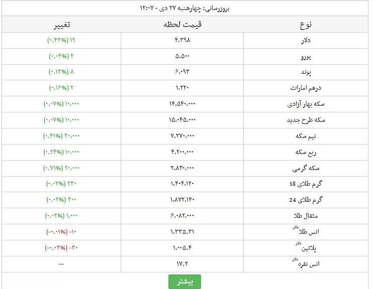 تغییرات لحظه‌ای  قیمت دلار، طلا، سکه و ارز را اینجا مشاهده کنید.