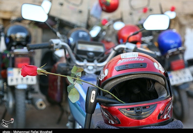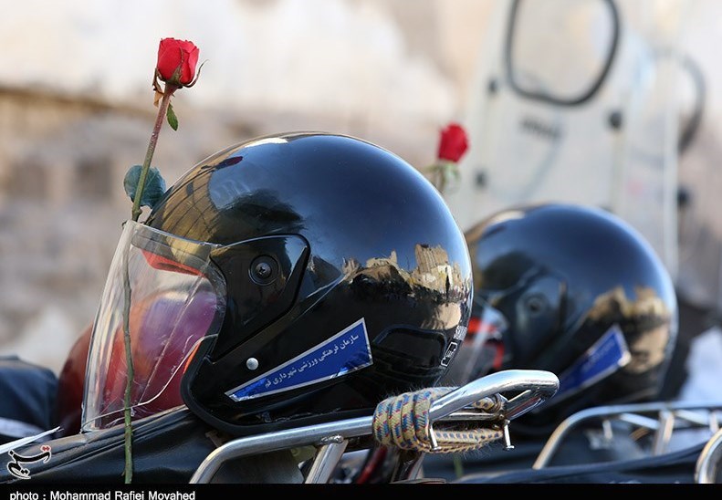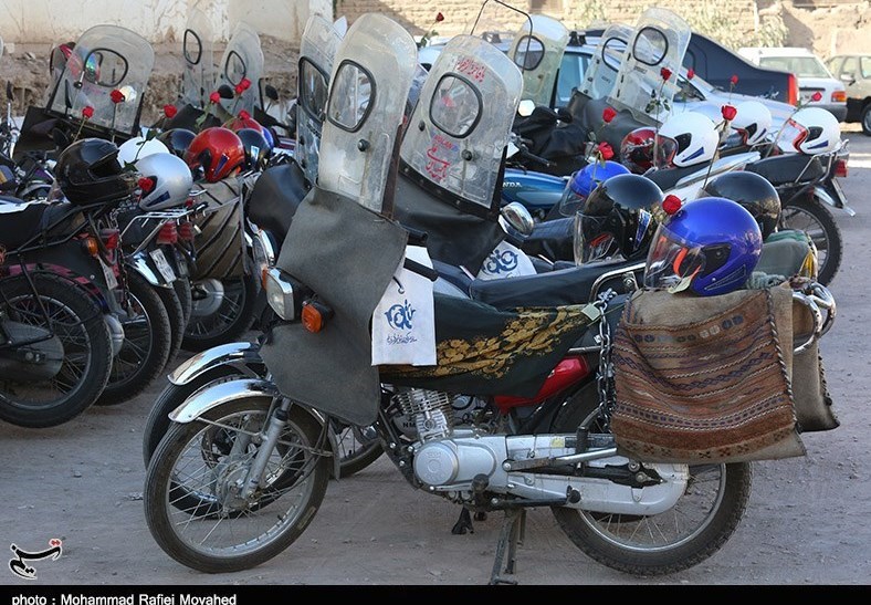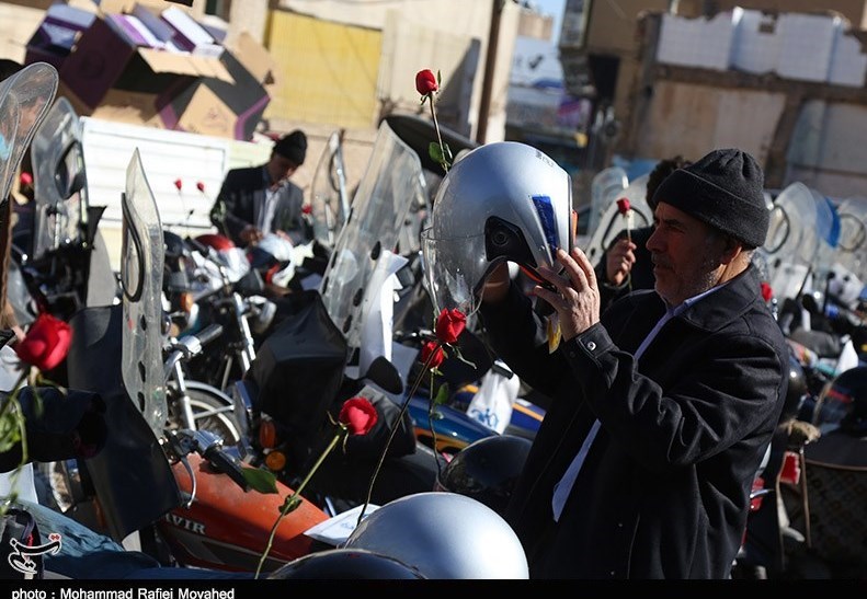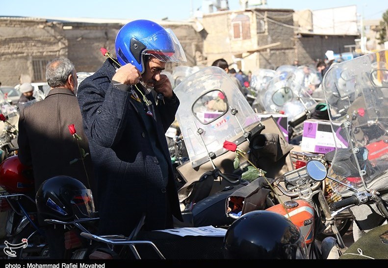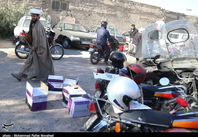 توزیع کلاه ایمنی در بین نمازگزاران دارای موتور سیکلت در قم به روایت تصویر