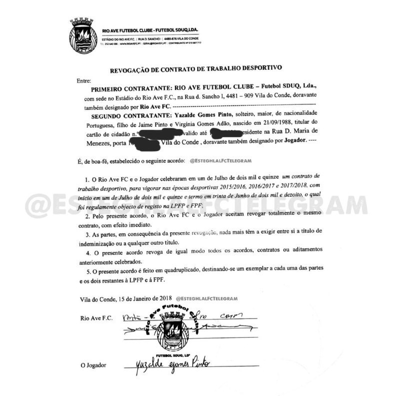 باشگاه استقلال برای قانونی بودن قرارداد پینتو، سند رو کرده و تصویر نامه فسخ قرارداد این بازیکن در تاریخ 15 ژانویه را روی وب‌سایت رسمی خود قرار داده است.